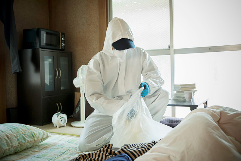 事故現場や孤独死など、通常の清掃では対応が難しい現場に専門スタッフが伺い、徹底した除菌・消臭・清掃を行います。